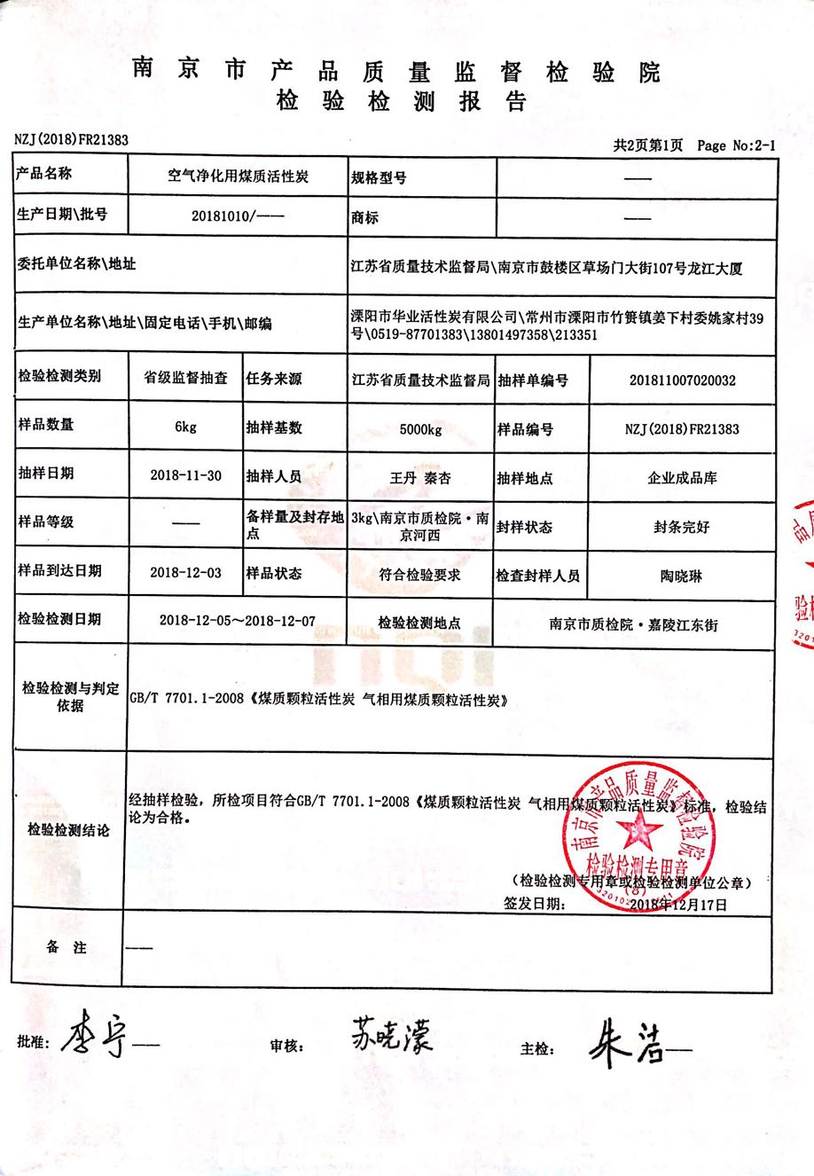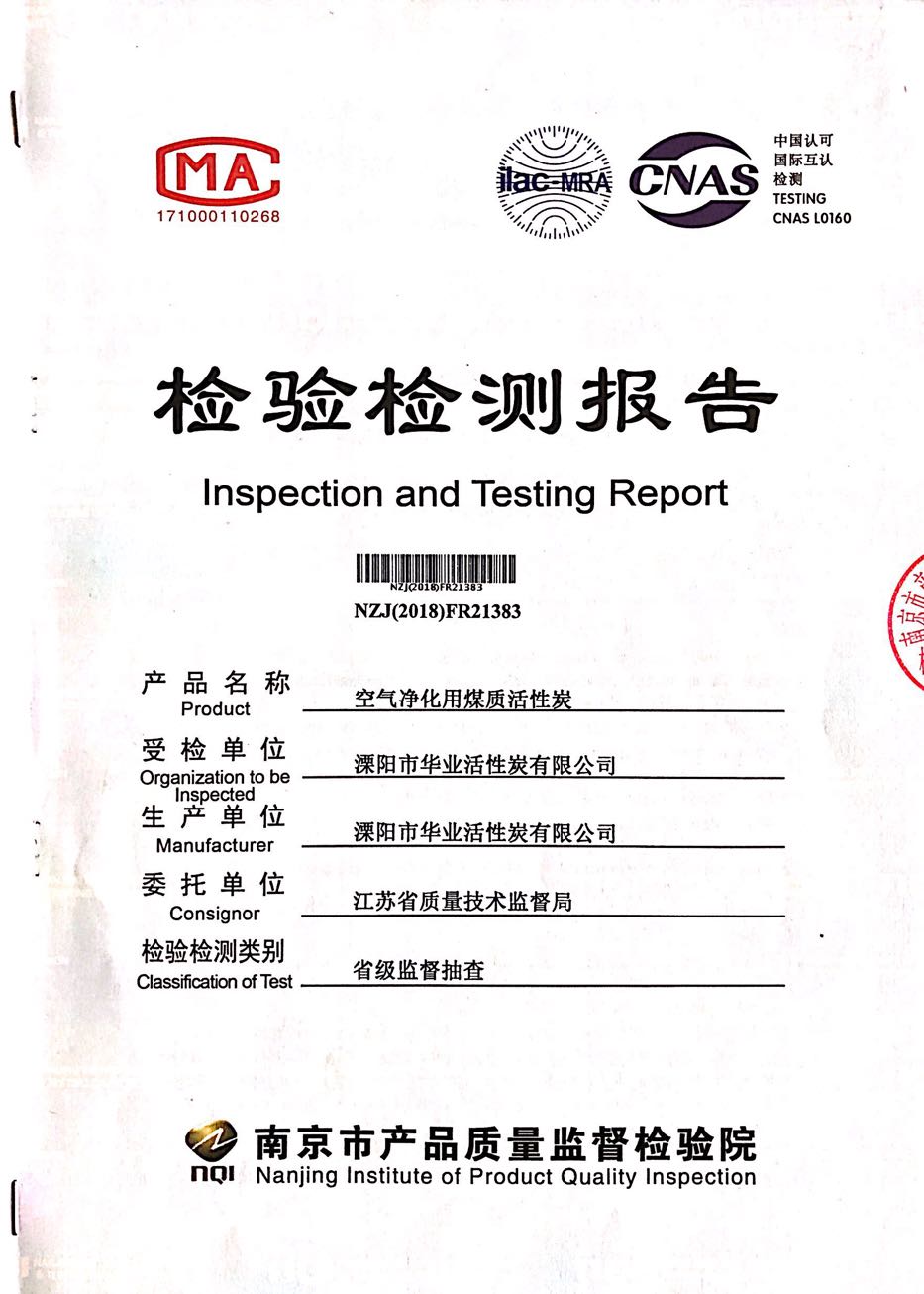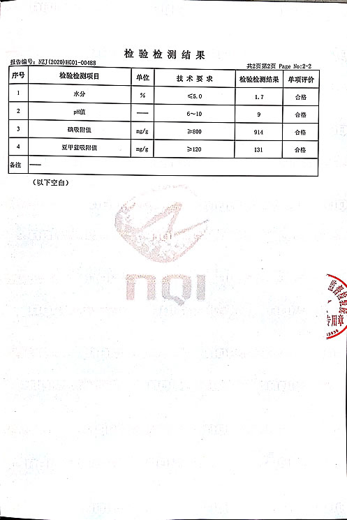 檢驗檢測報告——空氣凈化用煤質(zhì)活性炭 |