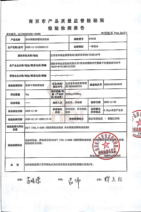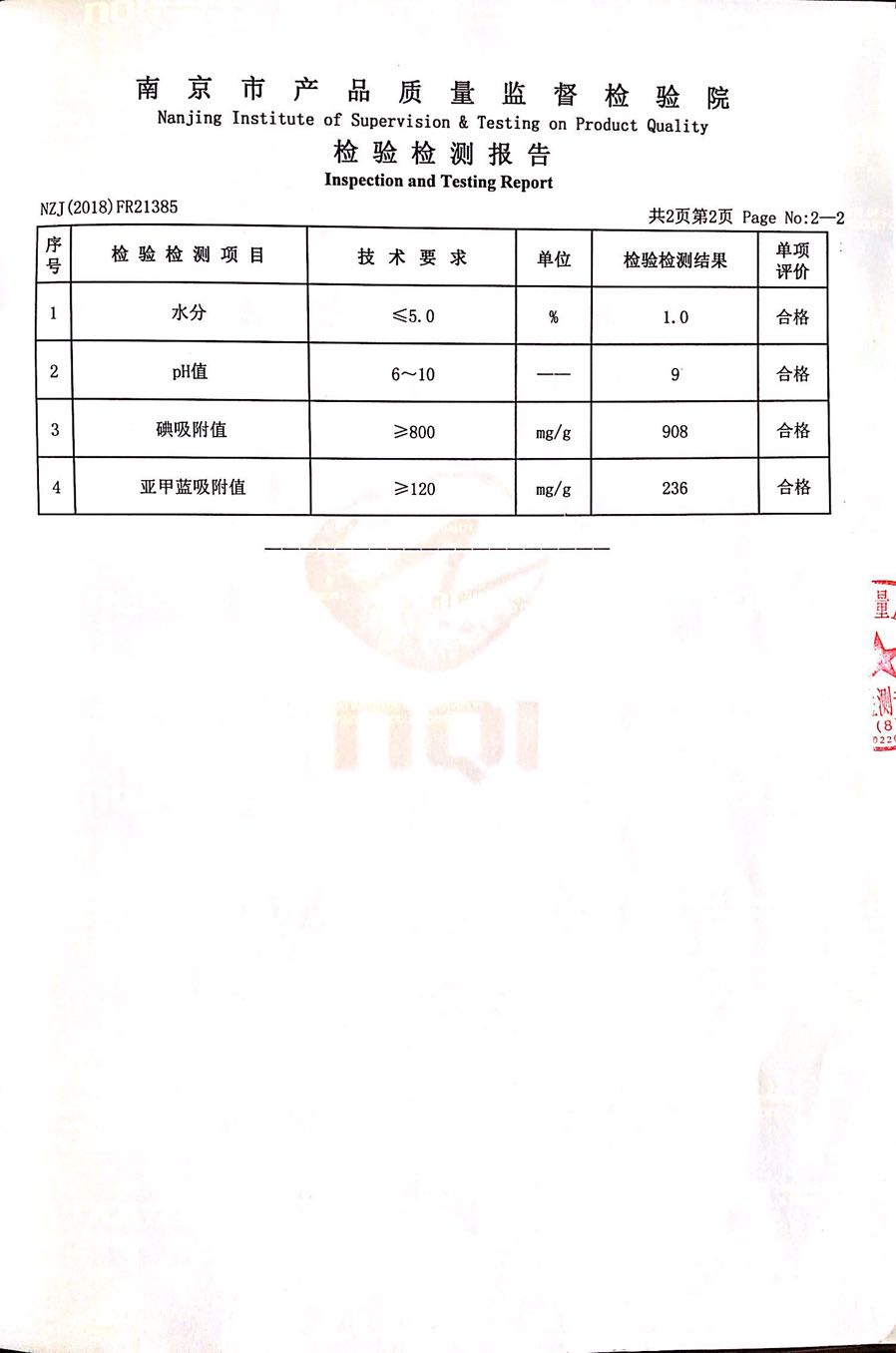 檢驗檢測報告——凈水用煤質(zhì)顆;钚蕴 |