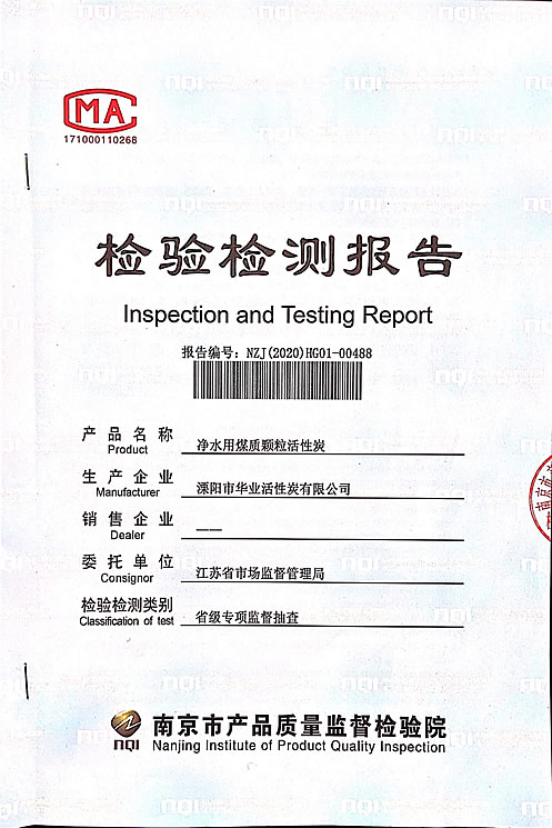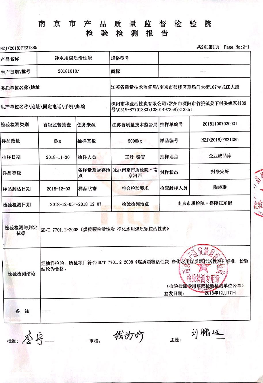 檢驗檢測報告——凈水用煤質(zhì)顆粒活性炭 |