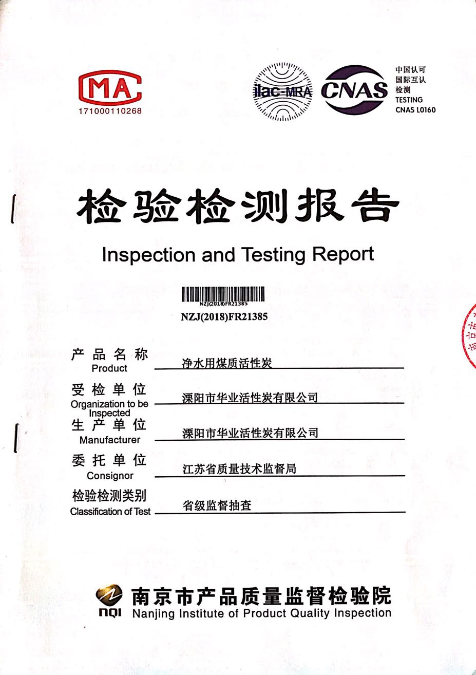 檢驗檢測報告——凈水用煤質(zhì)活性炭 |